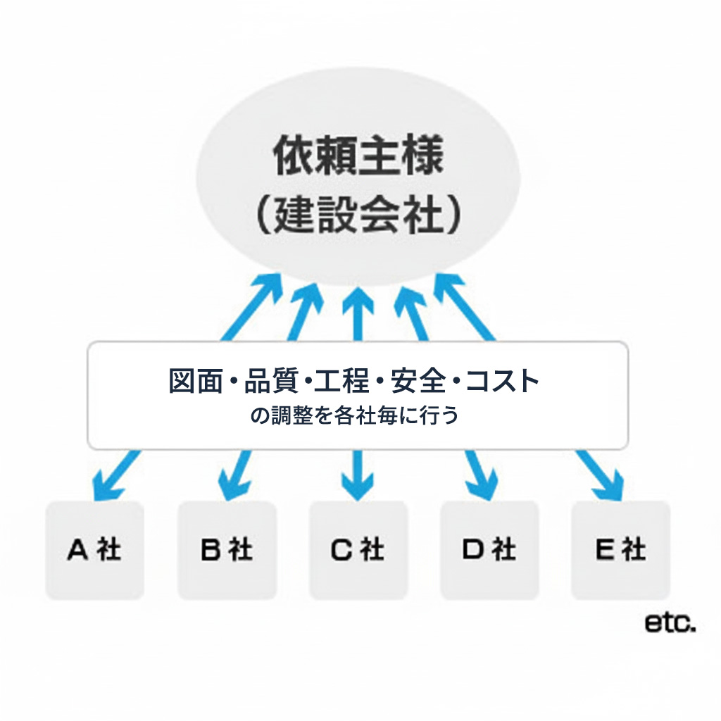 図面管理・品質管理・工程管理・安全管理・コスト管理、すべてを横断し、全体最適の視点で取りまとめます。